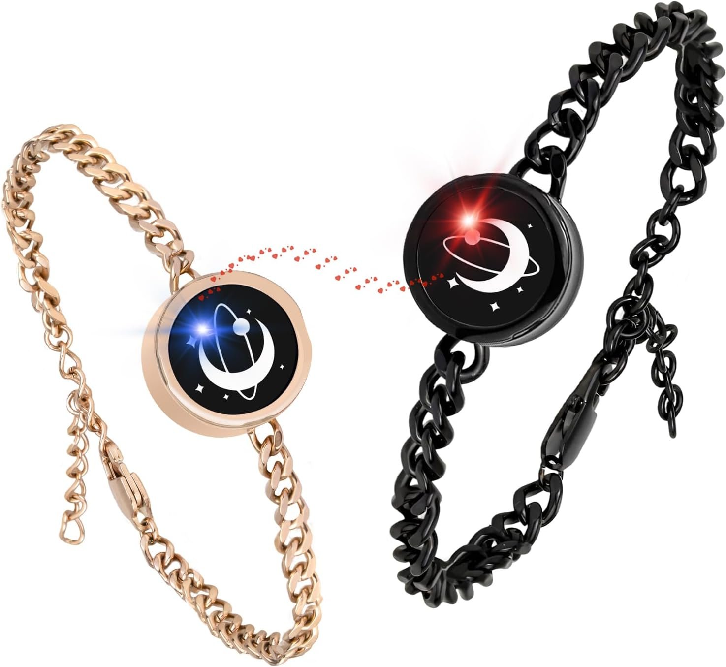 Dacida Long Distance Touch Bracelets,Couples Bracelets, Remote Smart Matching Couples Bracelet for Couples Suitable for Long Distance Relationship Girlfriend Boyfriend Passing on Love and Miss Gifts